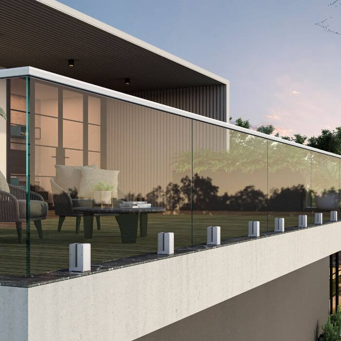 Ideal for constructing glass railings on floors or parapets using a special base profile, the system is compatible with glass thicknesses from 12mm to 19mm.
