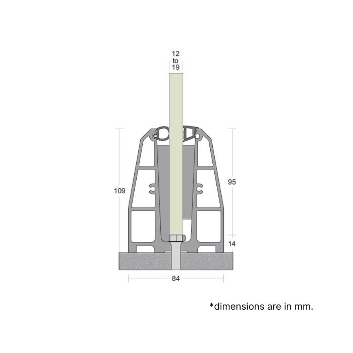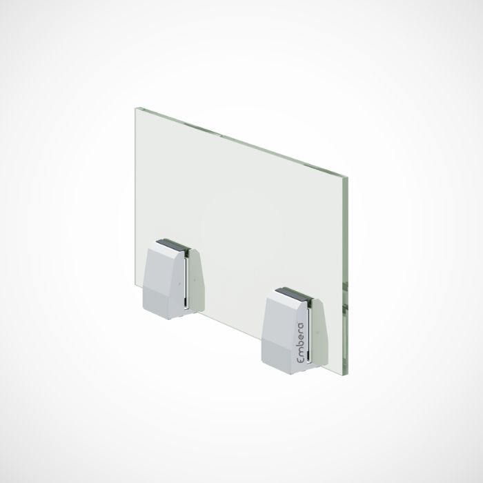 This on-floor glass support system uses durable aluminium brackets and is compatible with glass thicknesses from 12mm to 19mm.