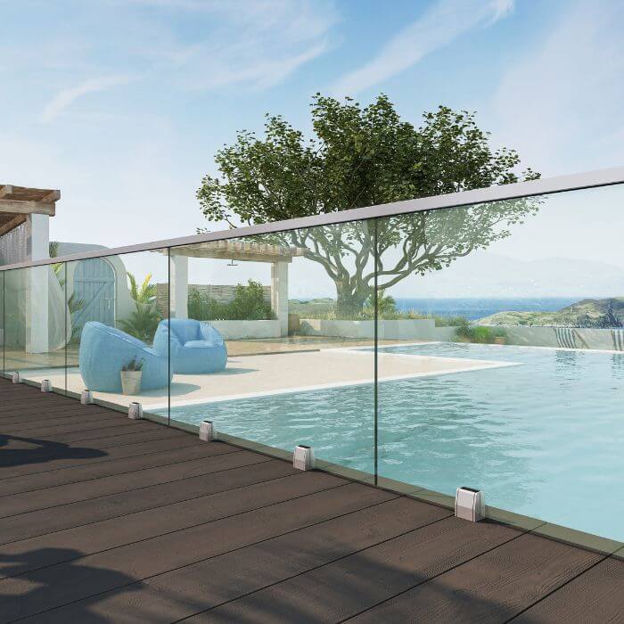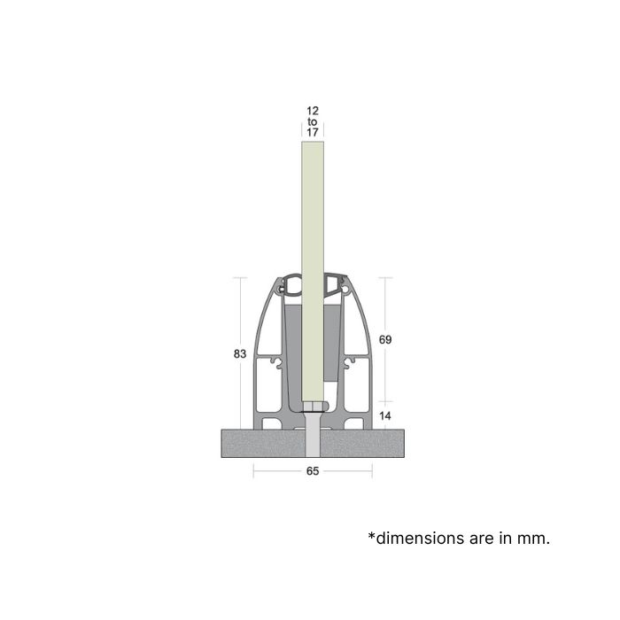 This on-floor glass support system uses strong aluminium brackets and is compatible with glass thicknesses from 12mm to 17mm.