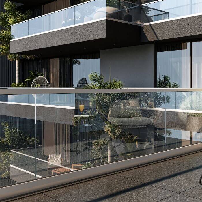 EMBERA MB CPT 26 continuous base profile railing system offers a fully frameless design with no need for columns or additional supports, ensuring a transparent and uninterrupted view. It is the perfect solution for achieving a clean and minimalistic aesthetic.