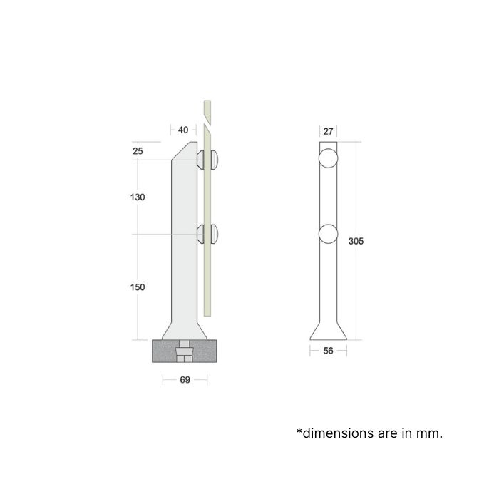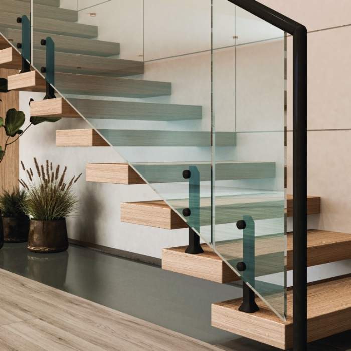 EMBERA aluminium top-mount baluster with routel system can be used in both exterior and interior applications, especially where a gap between the floor and the lower edge of the glass is needed. This system features two balusters supporting each glass panel, with routels lifting the glass off the ground and connecting it to the balusters.