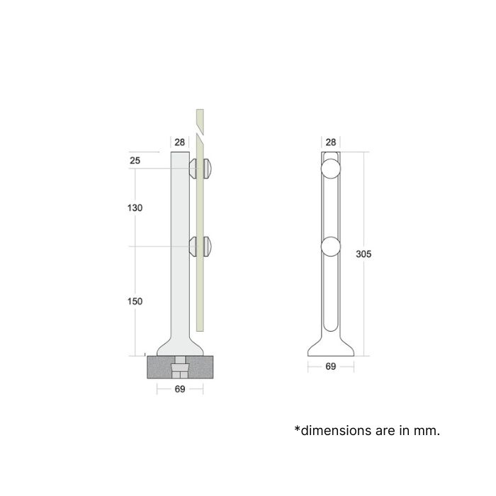 EMBERA aluminium top-mount baluster with routel system is designed for use in both exterior and interior applications, especially where a gap between the floor and the lower edge of the glass is needed.